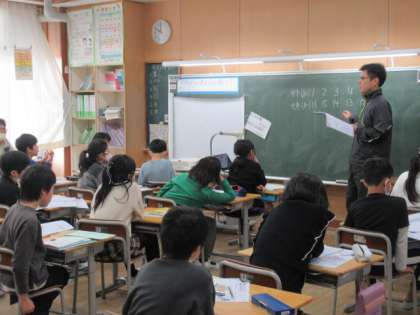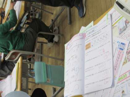 学期末の算数のまとめの学習です。表を見て、変わり方についてのルールを見つけ出し、課題を解決していきました。