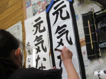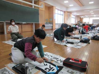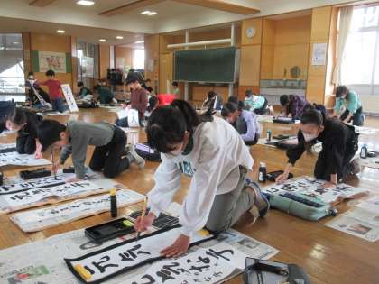 書初の最後の練習です。本番会場への入場からシミュレーションし、準備から片付けに至るまでをやってみました。しんと静まり、空気が止まったかのような雰囲気に、あと数ヶ月で高学年の仲間入りをする子供たちの成長の姿を感じました。