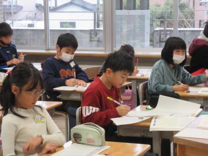 組み立てをもとにお話をつくります。事件が起こり、どのように解決するのか、構成を考えて楽しいお話をつくっていきました。