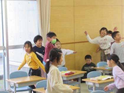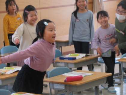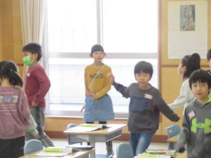 音楽科の学習では、音楽から聴き取ったこと、体感したことを体の動きで表現することがとても大切です。そのため、授業のはじめには、既習曲で「感じる」「感じたことを表す」時間を設けるようにしています。
