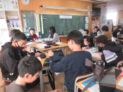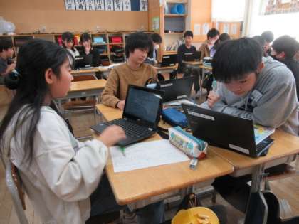 日本の文化や習慣等についてプレゼンします。グループでその準備の活動をしました。伝えたいテーマに合わせて、伝え方の工夫も変わってきます。意見を出し合いながら取り組んでいます。