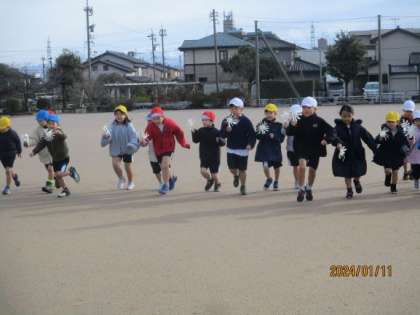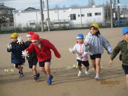生活科「かぜとなかよし」の学習で、風車を作りました。今日は、外で風車で遊びました。冬の冷たい風を感じながら、思いっきり遊びました。