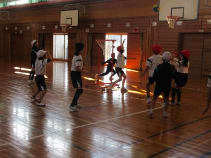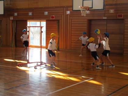 体育科でセストボールをしました。味方に素早くパスを出したりドリブルをしたりして、たくさんシュートを決めました。どの色団も練習の成果を発揮していました。