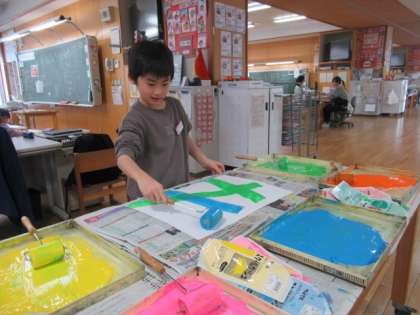 2年 ステンシルローラー版画をつくろう