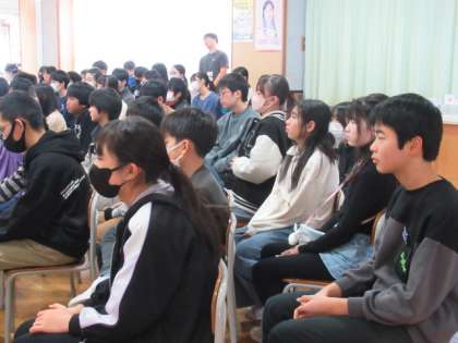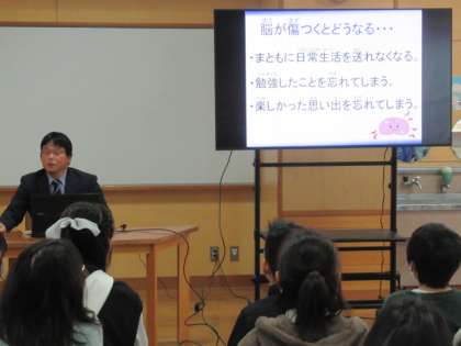 法務局少年支援センターより講師の先生をお招きし、薬物の恐ろしさについて学びました。乱用によって、脳も傷つけられ、その後の生活にたいへんな影響を与えてしまうことが分かりました。