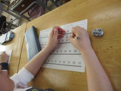 ワークシートには、一目盛り1としての数の線が引かれています。それを使って、しっかりと数えていきました。