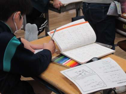 音読みと訓読みの両方を用い、五・七・五のリズムをもたせます。すでに4枚つくった強者もいます。