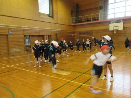 子供たちは大縄に熱中しています。朝はもちろん、休憩時間も声を掛け合って励んでいます。単純な技に見えて、実は、基本こそ技に生きていきます。それを理解して、楽しくかつ真剣に取り組んでいます。
