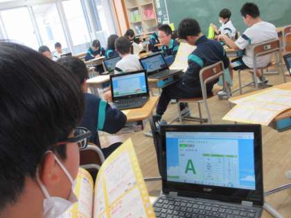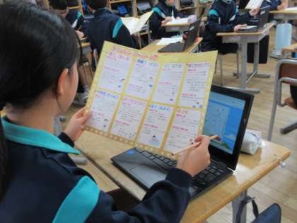 体力つくり活動「技7(セブン)」の自分のこれまでの取組について、シートにまとめていきました。どれだけの成果を上げたか、楽しく確認していきました。