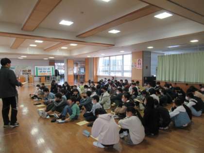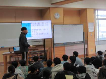 今月30日にはスキー学習を予定しています。それに向けて、事前指導のための学年集会を開きました。スキーは初めて、という子もたくさんいます。安全に、かつ楽しい学習にしましょうね。