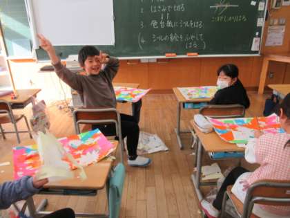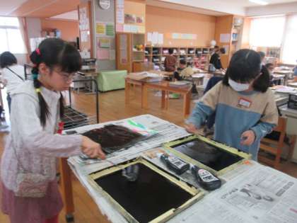ステンシルローラー版画も大詰め。今日は、シールを貼った上で、全体を黒で着色しました。次回はシールを外していきます。楽しみです。