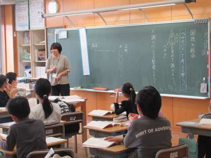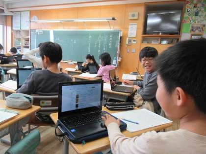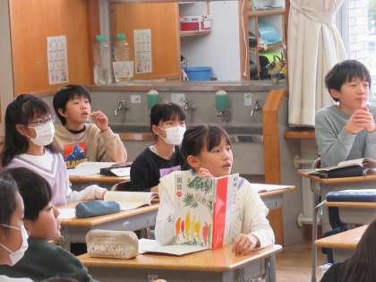 国語科と総合的な学習の時間をリンクさせた学習です。これまでずっと追究を続けてきたヘチマについて、自分の考えを書きます。そのために、まず考えることは、「テーマを設ける」こと。思いつきで表すことがないようにテーマをしっかりと設定します。その上で、必要な情報を集めます。書籍でもよし、ネットでもよし。ただし、引用した場合は、例えば出典はどこのものなのか、またどこから引用したのか、それを明記することが必要です。前半の全体学習で進め方やポイントを理解した上で、後半は個別に学習を進めていきました。