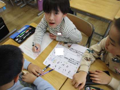 新しい係が決まり、係カードをつくっています。目当てややりたいことを考えて真剣に書いています。