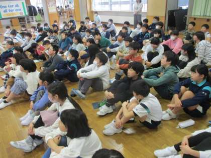 スキー学習に向けて、スキー靴の履き方や当日のスケジュールを確認しました。子供たちは、初めてスキーをする子が多いので、ドキドキ・わくわくした表情でした。安全に気を付けて、スキー学習を楽しみましょう!