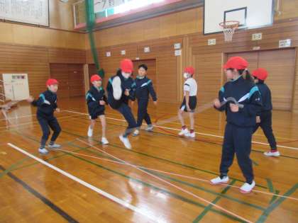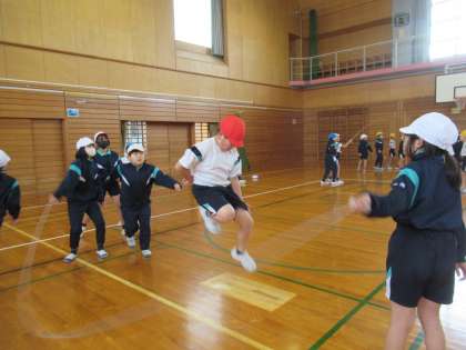 2分間の規定時間の中で記録を伸ばすには、縄を止めないこと、ある程度の速さで回すこと、そして間を切らさないことなどがポイントです。毎朝練習に励んでいる成果が表れる迫力ある競技になってきました。ゼロ文字で回ると、そろそろ次に間に合わなくなる勢いです。