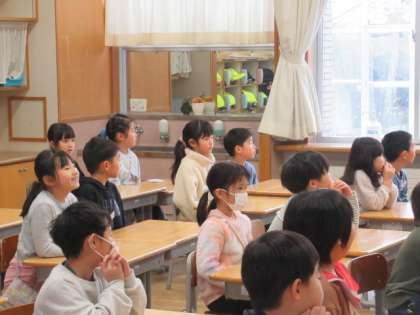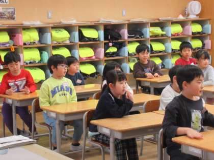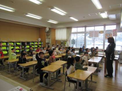 今日は地震、津波を想定しての避難訓練を行います。1月1日の大地震のことを振り返りながら、丁寧に指導を行いました。子供たちのお話を聞く態度もすばらしいです。