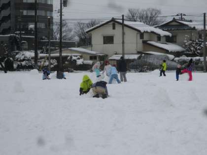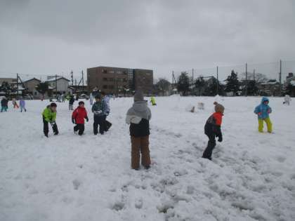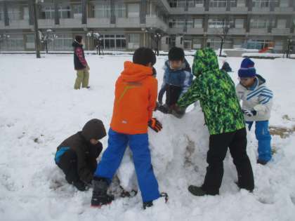 楽しみにしていた雪遊び。雪合戦をしたり、力を合わせて大きな雪玉を作ったりと、思い思いに雪と親しみました。