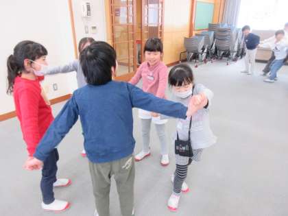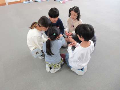 「なべなべそこぬけ」では、「みんなでやってみたい!」と大人数で遊んだり、「あんたがたどこさ」では、自分達で手振りを付けたりと、工夫して楽しむ姿が見られました。