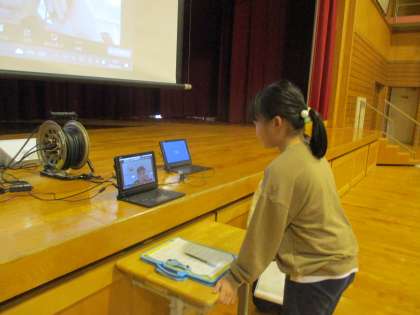 富山県内の様々な小中学校がリモートでつながり、SDGsについて自分の学校で取り組んだことを紹介し合ったり、意見を交換したりする会に参加しました。接続のトラブルもありましたが、他校の子供たちと意見を交換し合うことができてうれしそうでした。
