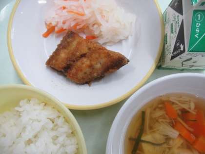 溶くに今日の給食のように、大根とにんじんでつくったなますを「紅白なます」といいます。大根の白色とにんじんの赤色がとてもおめでたい色合いで、縁起のよい料理として、食べられています。富山県には、このなますに油揚げなどを入れた「おすわい」という郷土料理もあります。