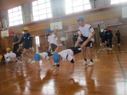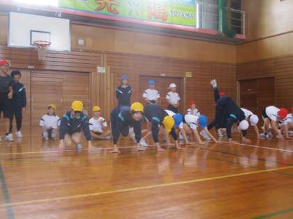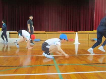 跳び箱の大事なポイントの一つに「体を支える腕の力」が挙げられます。今日は、腕の力を高める基礎トレーニングを行いました!