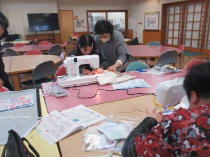今日は、ボランティアの方々5名に教えていただきながら、エプロンづくりのミシンがけに挑戦です。分かりやすく教えていただき、ミシンの便利さがとてもよく理解できました。ボランティアの皆さん、ありがとうございました。