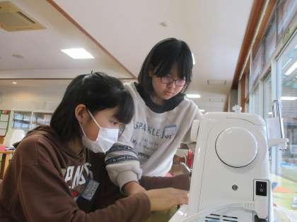 ミシンボランティアの方に来ていただき、エプロンをつくりました。子どもたちは、ボランティアの方に教えいただいたおかげで、上手に縫うことができてとても嬉しそうでした。