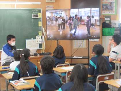 自分たちの全員跳びの録画を見て、改善のためには何が必要か話し合いました。「真ん中で跳ぶこと」「列を詰めること」「声を掛けること」「跳んだらすぐに抜けること」など、自分たちの姿から課題を見つけ出しました。