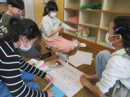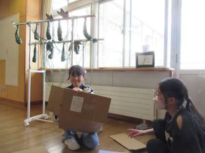 一年間継続して追究してきたヘチマについて、その成果を伝えます。また、せっかく伝えるなら、分かりやすく、そして楽しくやりたい!ということでショップ形式の発表です。どのコーナーもクイズ、ゲーム等面白いアイディアが満載です。何より、準備している子供たち自身がまず楽しむことができています。計画を立て、実行し、見直し、改善する、のサイクルを見通しをもって進めています。