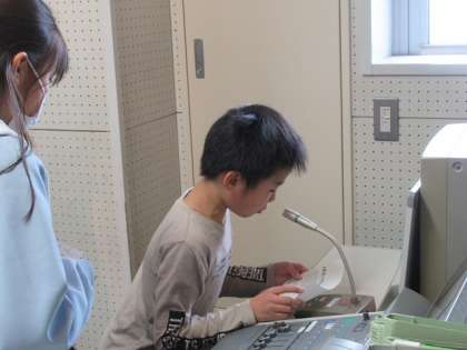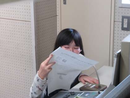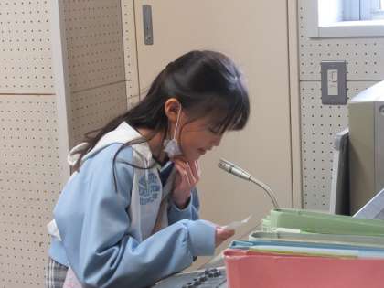 来週いよいよオープンするヘチマショップの宣伝を校内放送を通して行いました。マイクの前で緊張しつつも一人一人がはきはきと伝えることができました。