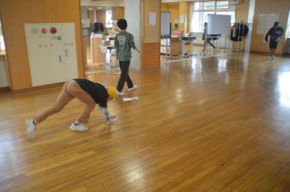 卒業まで残り19日となりました。お世話になった教室やオープンスペースのワックスがけのための準備をしています。感謝の気持ちを込めて、ぞうきんがけをしています。