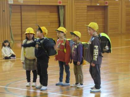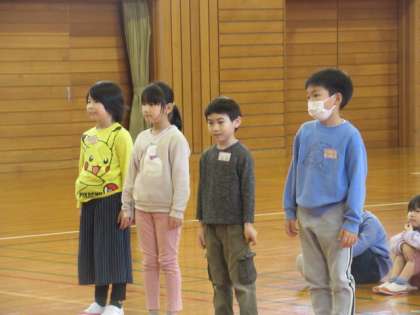 卒業を祝う集会に向けて練習に取り組んでいます。広い体育館でマイクを使わずに話します。一人一人がお腹からしっかりと声を出そうとがんばっています。