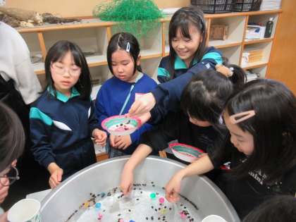 会場は、さながらお祭りの縁日のようです。みんなニコニコ笑顔で楽しみ、そしてニコニコ笑顔で教室に戻っていきました。