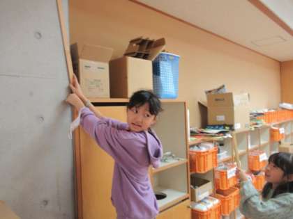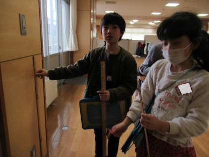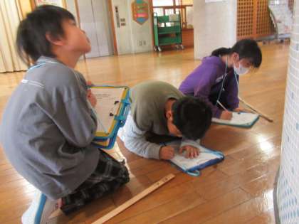 1mものさしを使って、校内のいろいろなところを測ってみました。ちょうど1mになっているところもたくさん見付けました。
