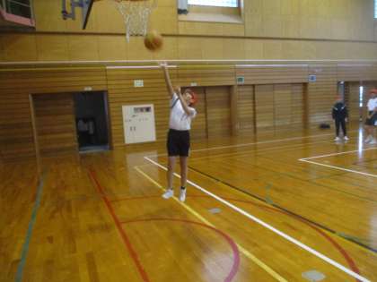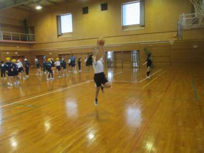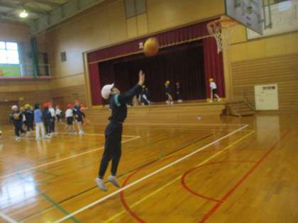 跳び箱の技アップ週間が終了し、今日の体育は久しぶりにバスケットボールを行いました。ドリブルやパス、シュート練習を行いました。