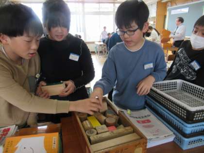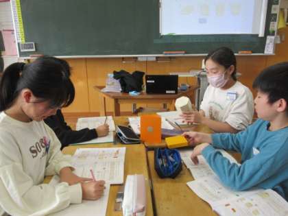 角柱、円柱等たくさんの立体を用意しました。面や辺の関係について、実際に手に取りながら考えていきました。