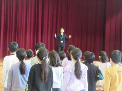 卒業を祝う集会では、4年生はお礼の言葉の後、歌を歌います。歌は、音楽の授業で歌ってきた「チャレンジ!」です。4年生の子供たちのお気に入りの歌です。