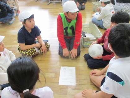 5年生がリーダーとなって活動する、初めてのたてわり遊びがありました。