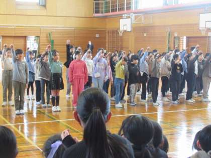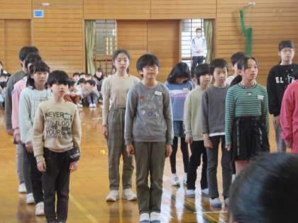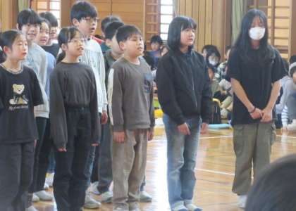 4年生は、6年生への感謝の言葉を呼びかけ形式で伝えました。そして歌「チャレンジ!」を伸びやかな歌声で歌い上げました。未来へ羽ばたく6年生にぴったりのプレゼントの歌です。
