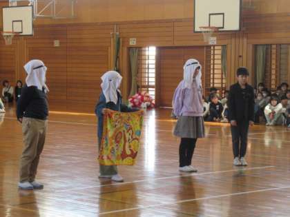 5年生は今回の集会のリーダーです。その役割にふさわしく、クイズをまじえながら劇を発表しました。6年生の6年間の歩みが分かる、ほのぼのとした劇でした。さすが5年生!