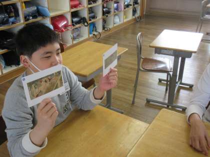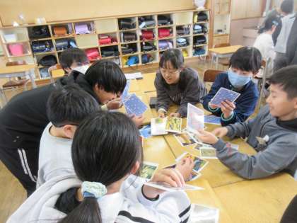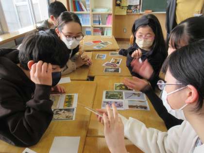 有名な絵画や建築物、写真等をカードにプリントした「アート・カード」を使って鑑賞の学習をしました。