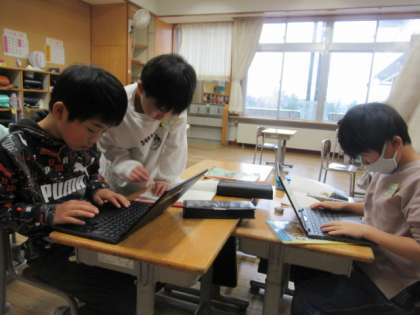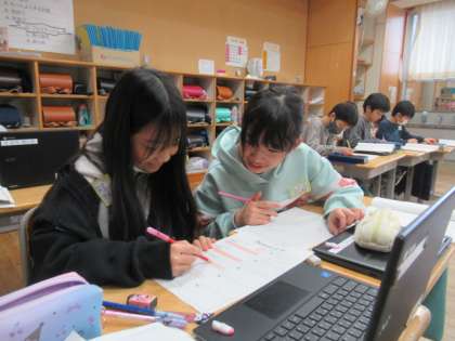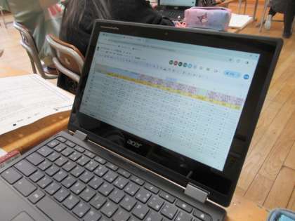 「モチモチの木」の学習では、自分でワークシートを選び、見通しをもって学習を進めています。また、その経過を互いにクロームブックで共有できるようにしています。