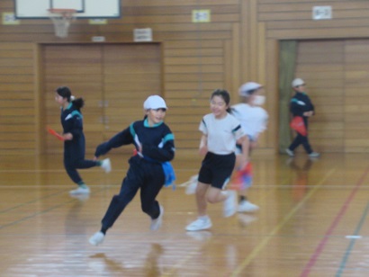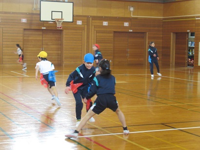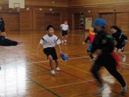 フラッグフットボールでは、今日は、活動の規模が大きくなり、団対抗で追いかけっこをしました。結果がスコアボードに累積されていくため、子供たちは真剣!熱い競技がくり広げられていきました。