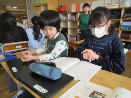 ペアやグループになってがんばっています。