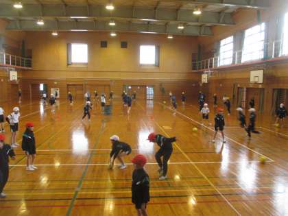 体育の学習では、ボール蹴り運動が始まりました。今日は、ボールの止め方や蹴り方、ドリブルを練習しました。足でボールをコントロールするのは難しいですね。