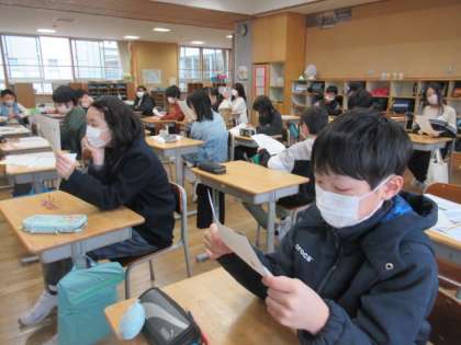 「できればやってみてね」の先生の言葉。子供たちは早速挑戦していました。