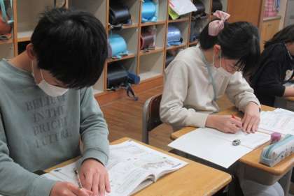 頭の中で事象を立体的に捉えなければならない難しい問題への挑戦です。互いに考えを交換し合って、解決へと向かいました。