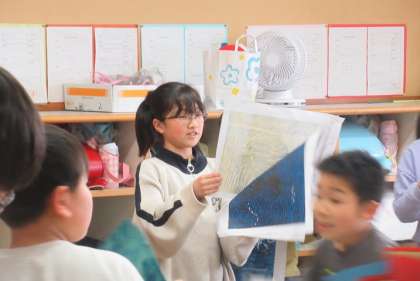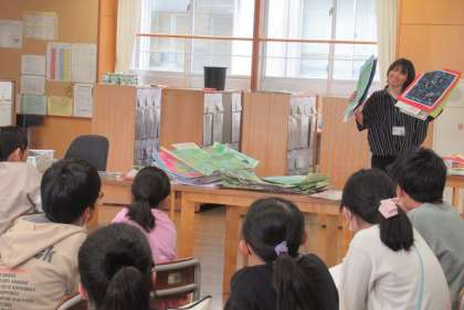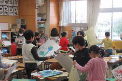 この一年間で製作した作品を返却しました。自分自身の作品が返ってきて、懐かしがる子、思わず微笑んでいる子、それぞれにこの一年間を振り返っているようです。子供たちの成長の姿が手がけた作品から窺われます。