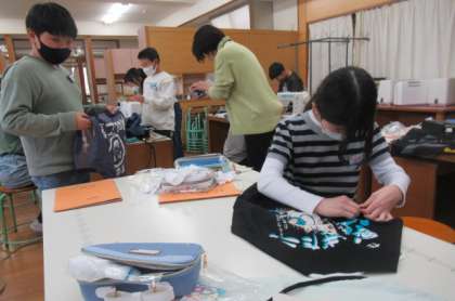 ポケット等の仕上げをしました。きれいに出来上がり、さっそく使ってみたいですね。