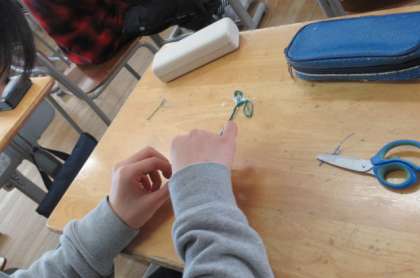 ミサンガをつくりました。モニター画面を見ながら製作できるため、初めての子供もばっちり出来上がりました。